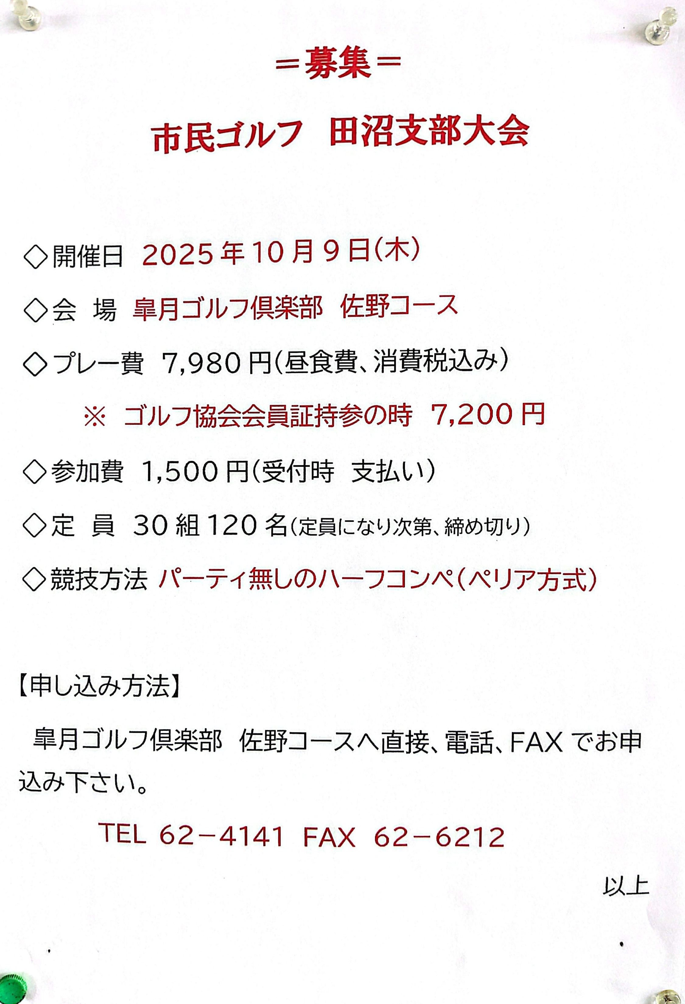 ♧2026♧会員募集♧佐野市ゴルフ協会♧